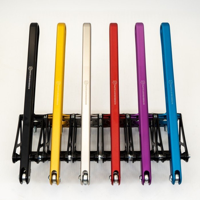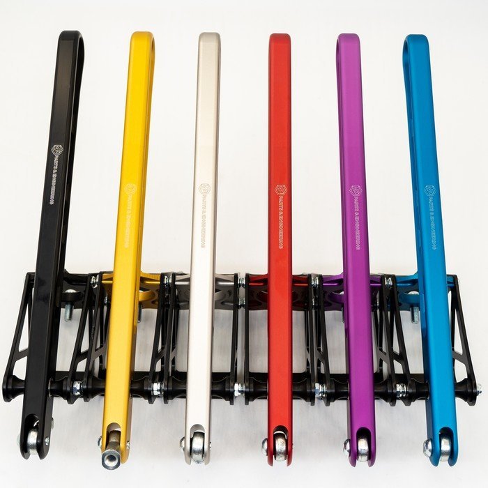 Handbrake reverse – CNC-machined 6082-T6 aluminium hydraulic handbrake with reverse master cylinder position. Features a 360 mm handle, spherical bearings, and anodized finish in six colors. Designed for rally, drift, and circuit motorsport applications. Master cylinder not included. Price from €112 excl. VAT.