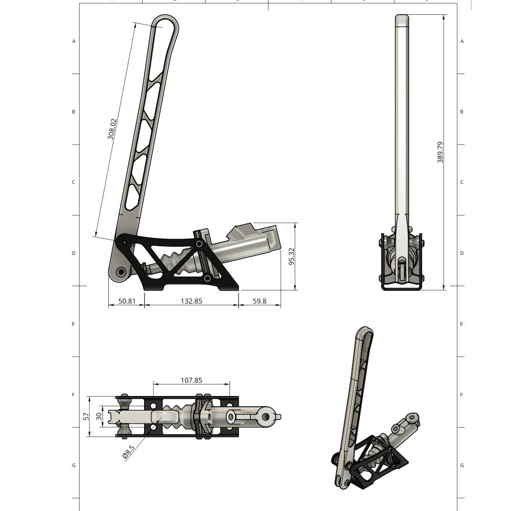 - 360 mm handle length – the extended handle provides good mechanical leverage, allowing controlled and progressive handbrake engagement during competition maneuvers.