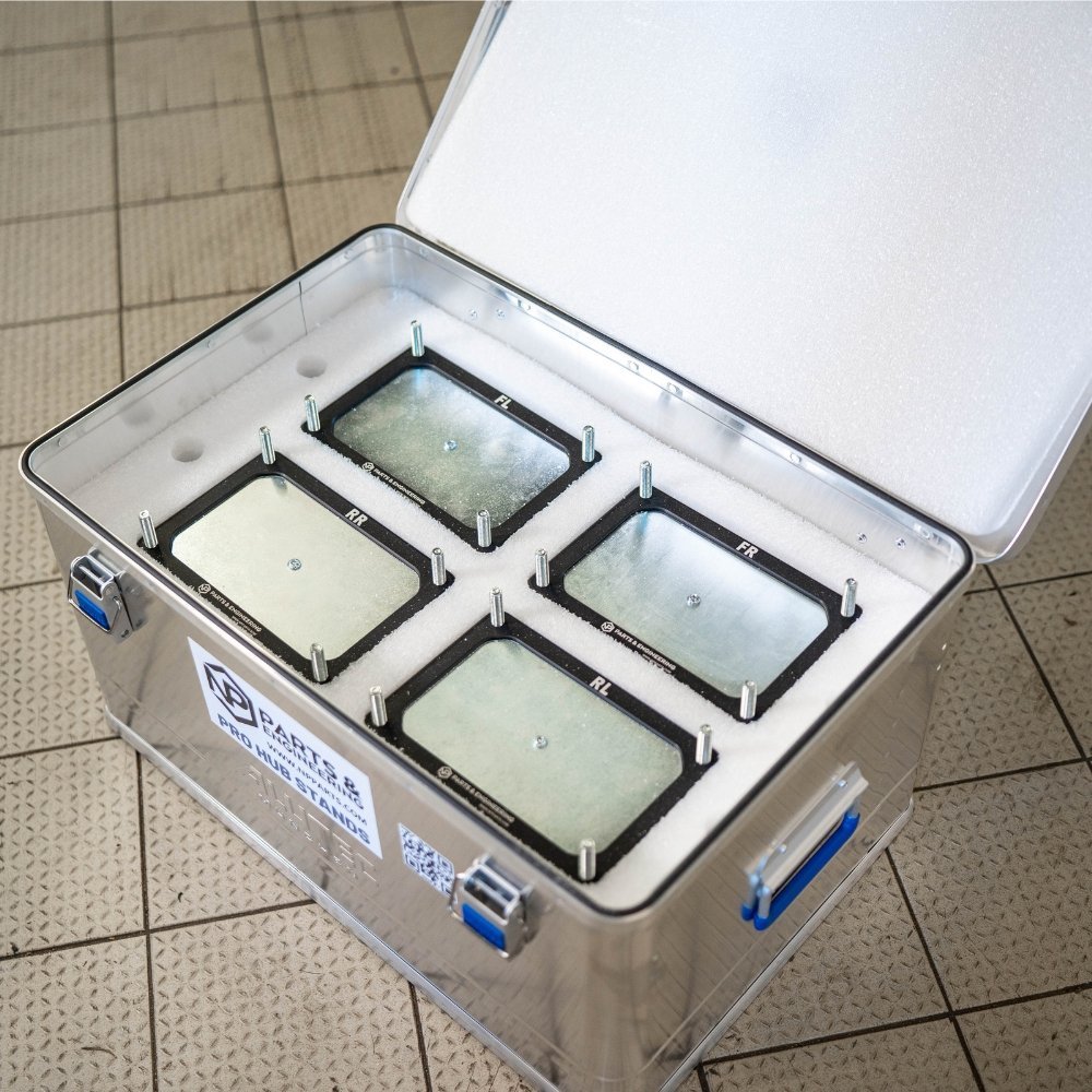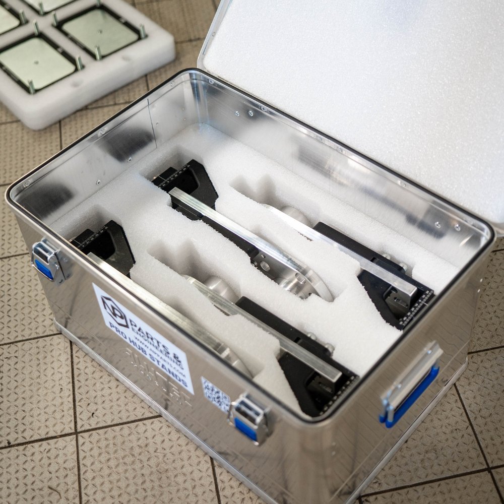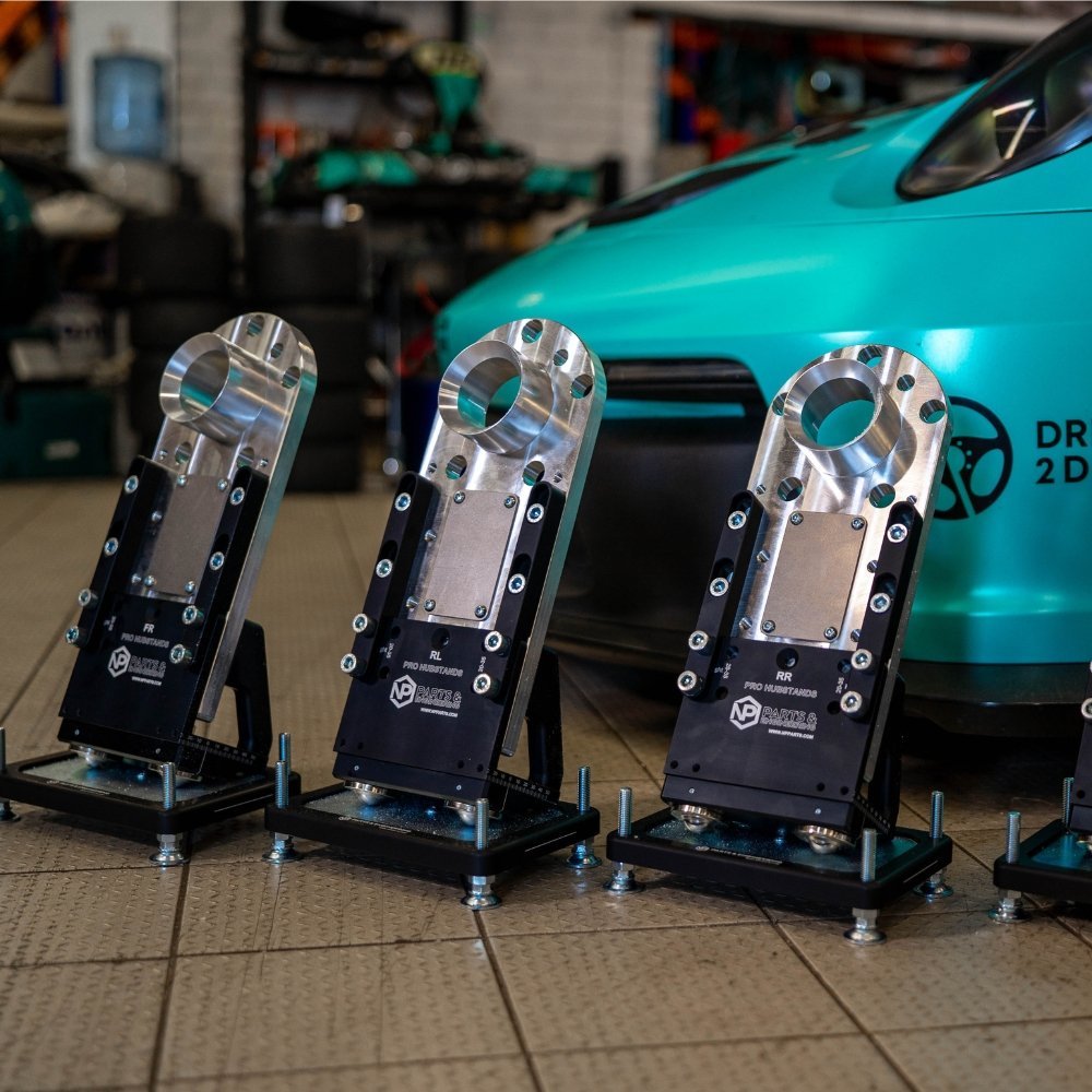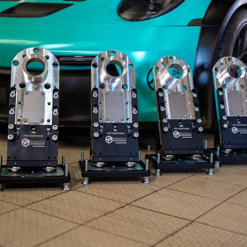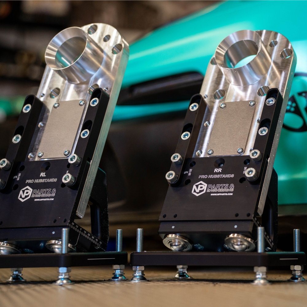 - Custom NP Pro hub stands with leveling base plates