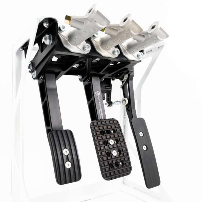 Designed as a bolt-in or weldable solution, it replaces the factory pedal cluster with a lightweight, fully adjustable CNC-machined system. Its compact, low-profile construction allows installation in tight cockpit environments while maintaining exceptional structural rigidity under sustained motorsport loads.